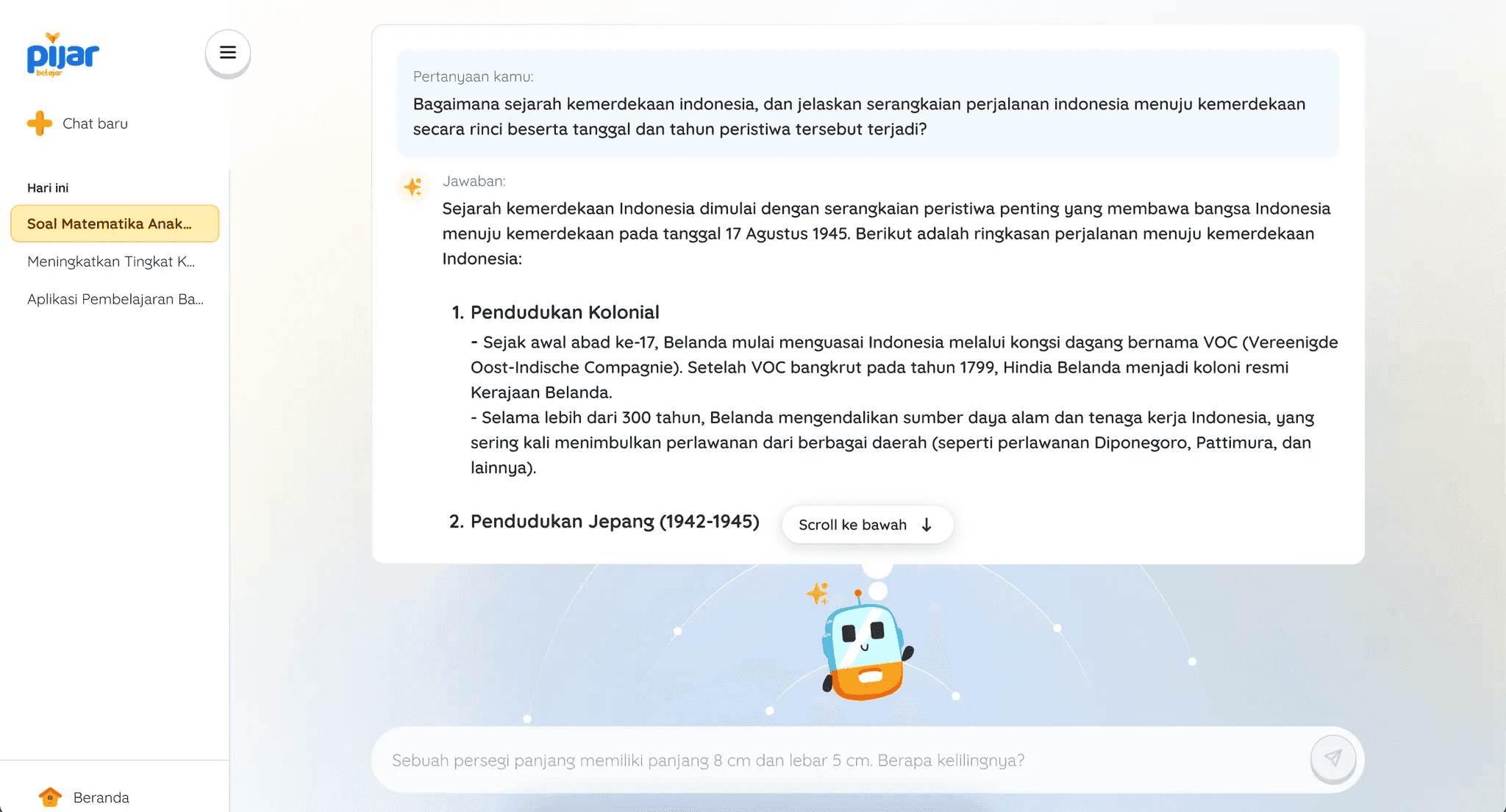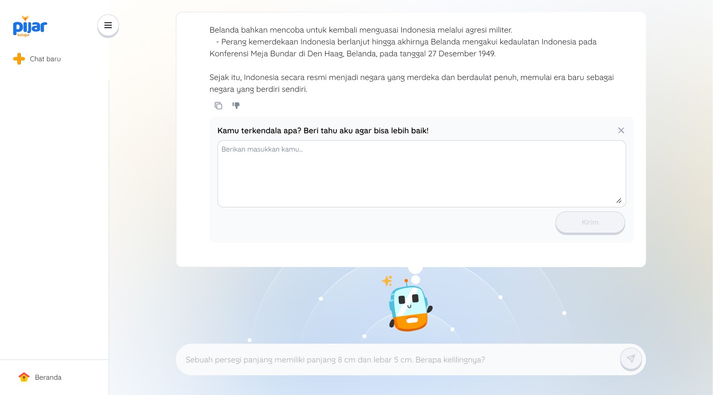 Tanya Pijar is an AI-powered feature that helps students get instant answers related to the subjects they’re learning. With its latest revamp, Tanya Pijar now comes with a more fun and engaging interface, using an AI chat format that makes interactions feel more natural, personal, and enjoyable. This project aims to enhance the user experience through a more interactive and user-friendly design.