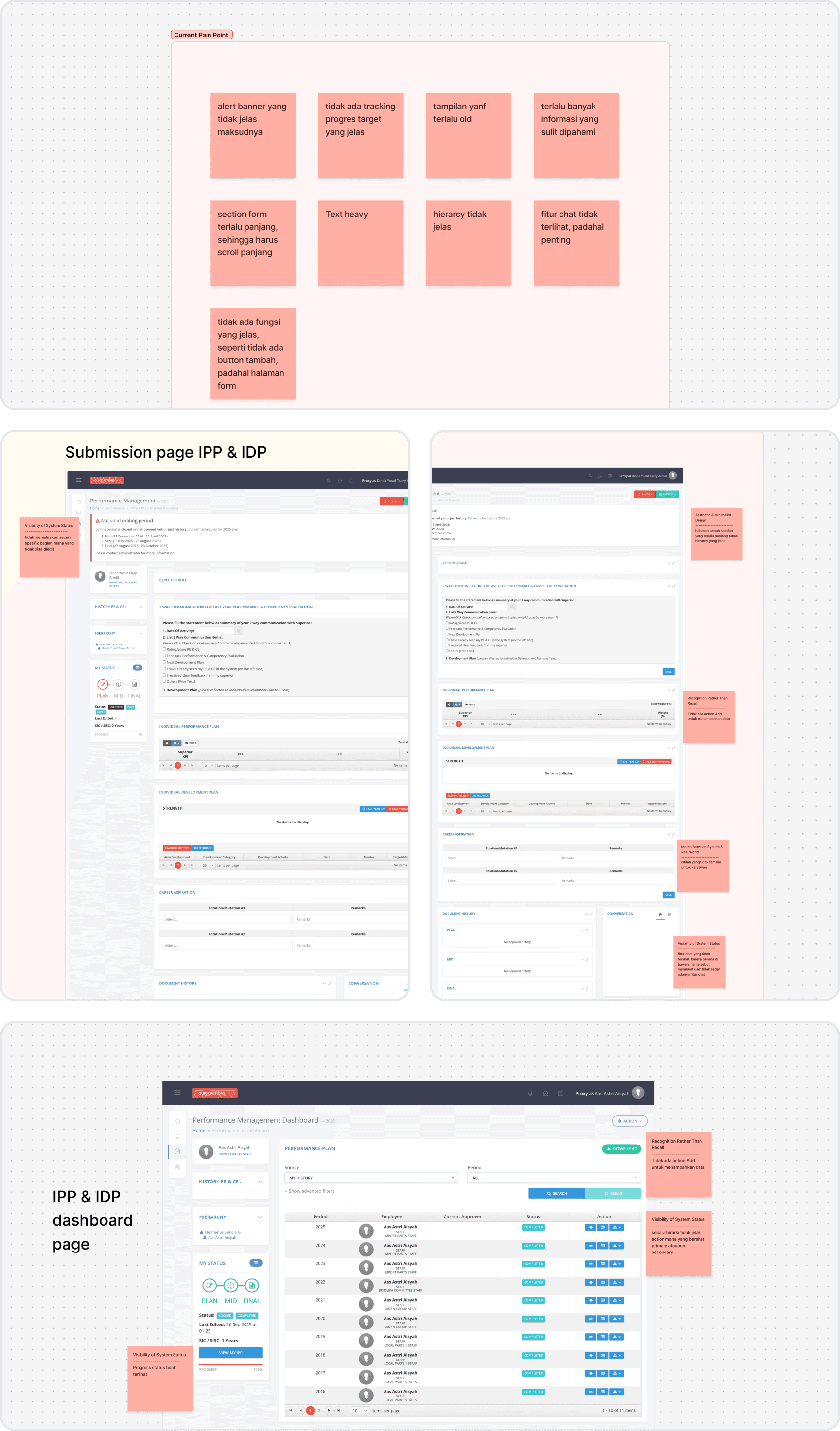The revamp of the Performance Management module (IPP & IDP) within Toyota Astra Motor’s HRIS successfully addressed core challenges related to system complexity, information overload, and unclear workflows for both employees and approvers.